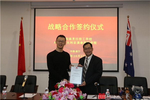 10月27日,我校与MIA澳大利亚精英学院,lmagine澳大利亚宜明教育学院、AFWE澳大利亚澳康国际学院、澳大利亚国立学院在东盟校区会议室举行战略合作签约仪式。4所澳大利亚学院代表我校党支部书记翟维铁、校长赵志权等领导相关部门负责人出席签约仪式。