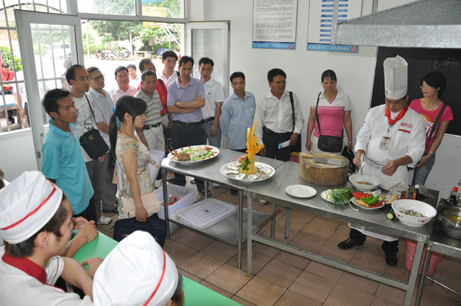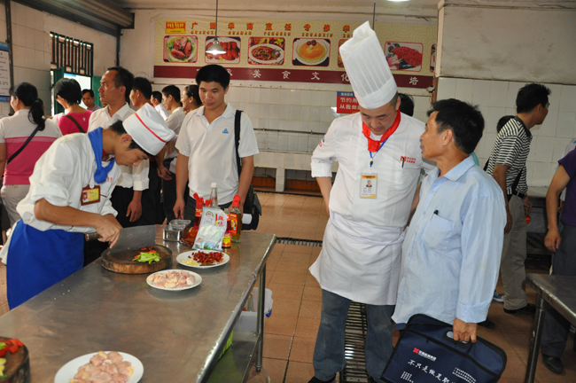 精美呈现细于专业,精于品质,华南烹饪,打造中国烹饪第一品牌。招生老师正在点评学员作品。