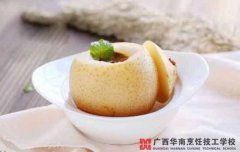 三月过半,春天已至,在这个季节里多多吃梨是个好习惯。今天广西华南烹饪技工学校就教你几种做梨的方法,让你吃出健康和美丽! 冰糖蒸梨 食材:梨、枸杞、冰糖 做法:1、切掉梨1/3的地方,留着做顶盖; 2、用勺子把